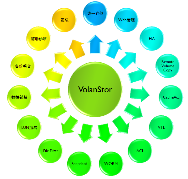 | 邏輯卷管理 | 在虛擬存儲池中進行邏輯卷劃分和管理,支持在線擴容 | |||||